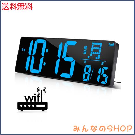 「2023最新」Blueekin デジタル時計 LED大画面 WiFi時間自動修正対応 大型 明るさ調整可能 見やすい 壁掛け置き兼用 目覚まし時計 大音量