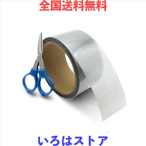 【セット内容】網戸補修テープ×1枚 + ハサミ×1個 、サイズ:約幅5cm×全長2m。色:グレー