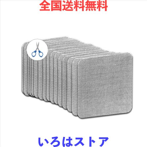 【セット内容】網戸補修テープ×20枚 + ハサミ×1個 、サイズ:約10cm×10cm。色:ブラック