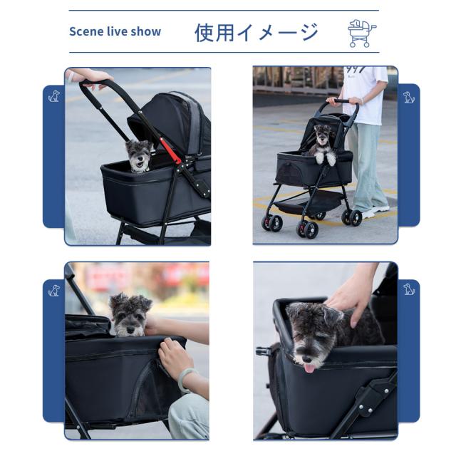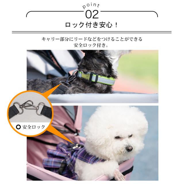 【優れた構造】4つの耐久性あるタイヤつき、安定した移動ができます;飛び出しを防止するため安全なリードが装備されています;また固定バックルによりペットが逃げません。安定性が抜群です。