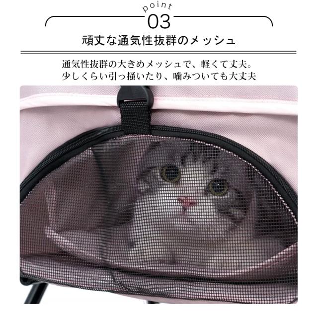 【通気性よい】いくつのメッシュ窓がつき、風通しが良いです。この素材はペットが爪を引いても破けにくい素材です。飼い主はカート内に愛犬や愛猫の状態も確認しやすくて、さらに通気性を持ちながら視界を防げることはありません。