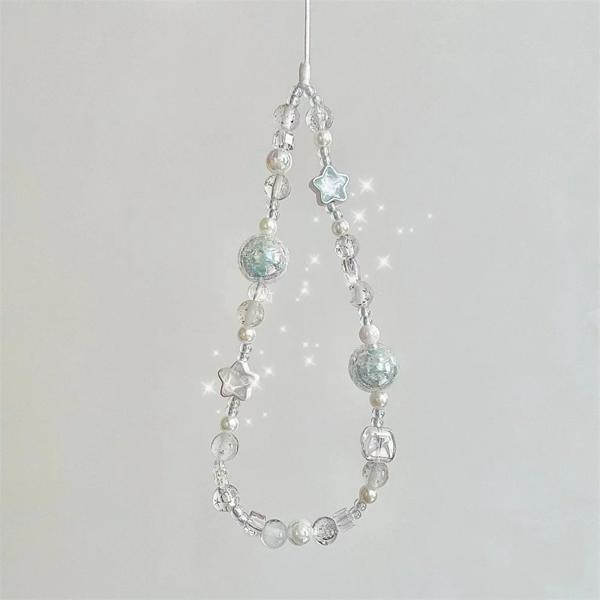 Feature4:INS Korean Sweet Blue White Heart Beaded Phone Charm Strap