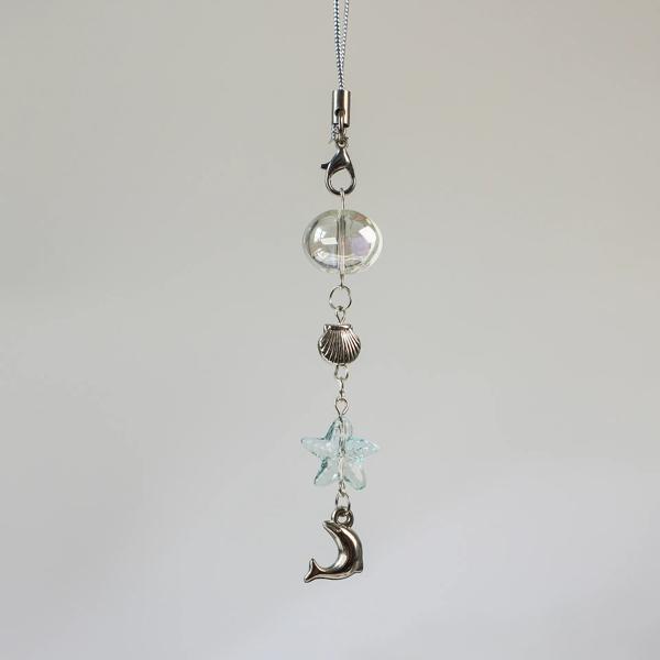 携帯電話ストラップ付きキーホルダー イルカ ヒトデ オーシャン 小さなフラワーペンダント ハンギングチェーン オリジナル