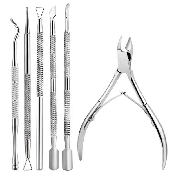 ステンレス鋼のネイルアートカッターとはさみセット キューティクルプッシャー デッドスキンリムーバーキット マニキュア ペディキュアツール 6個