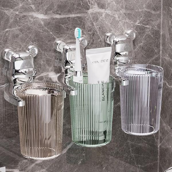 壁掛け式歯ブラシカップ クリエイティブベアラック プラスチック ポータブル 旅行 バスルームアクセサリー