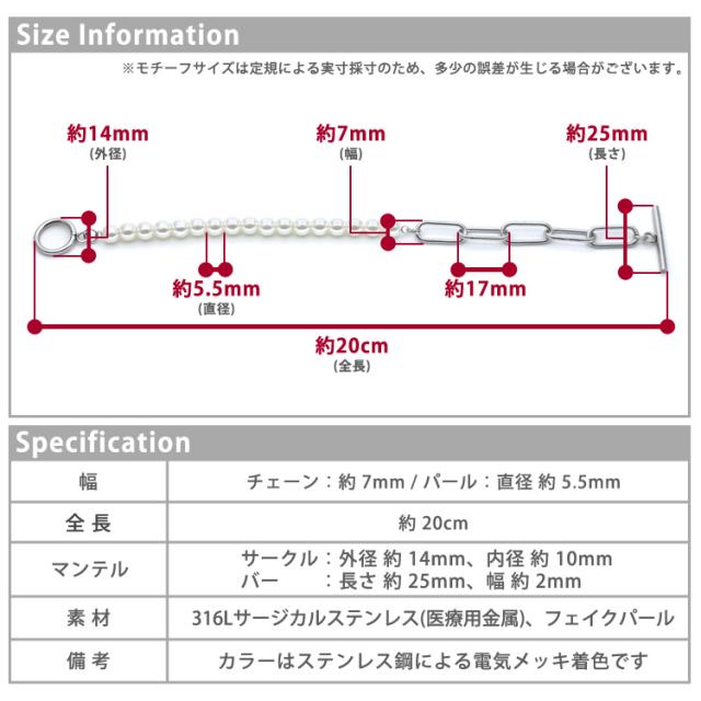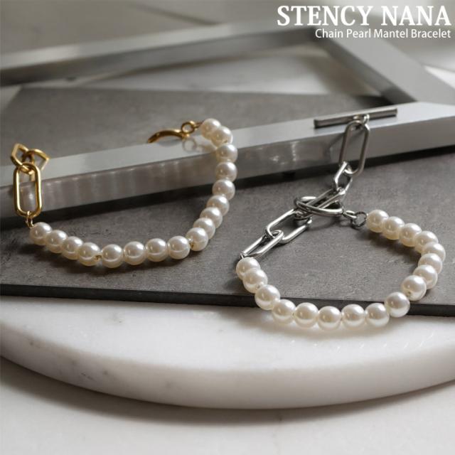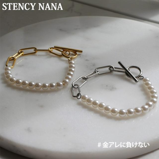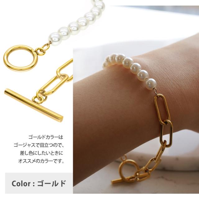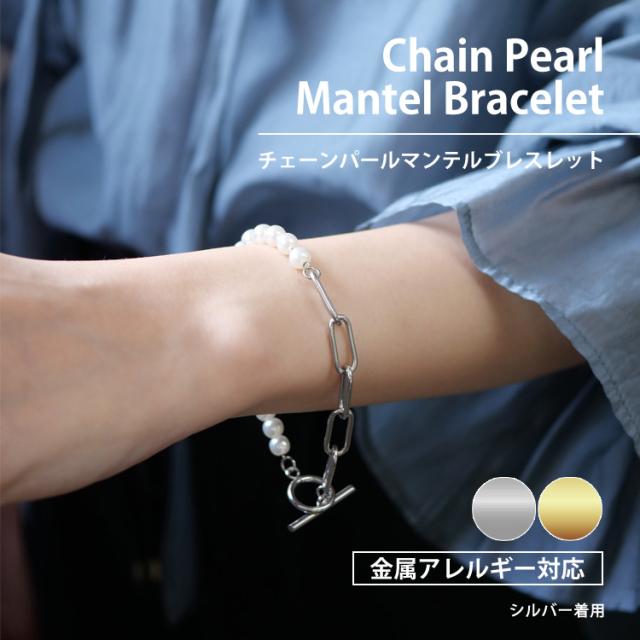 チェーンパールマンテルブレスレット ステンレスブレスレット 金属アレルギー 316L
