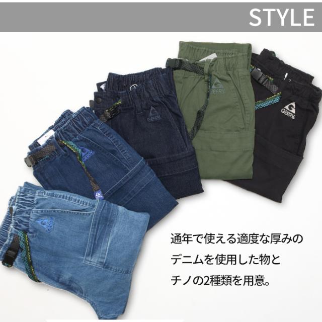 ジェリー GERRY クライミングパンツ 全5色 青/黒/紺/水色 M-L チノパン デニムパンツ ジーンズ ジーパン ストレッチ性 伸縮性 紫外線カット UVカット ベルト ロゴ刺繍 ロングパンツ 077770