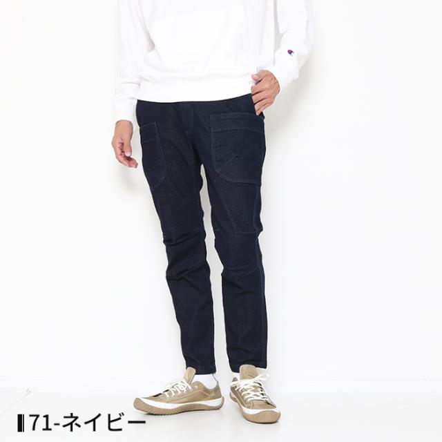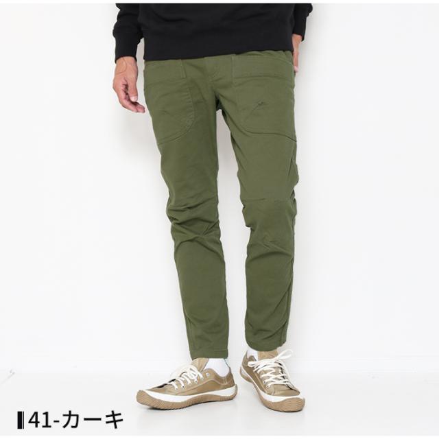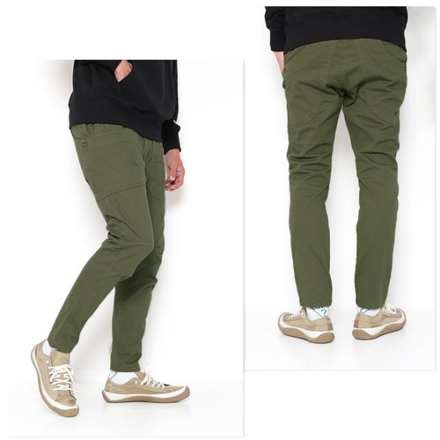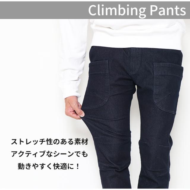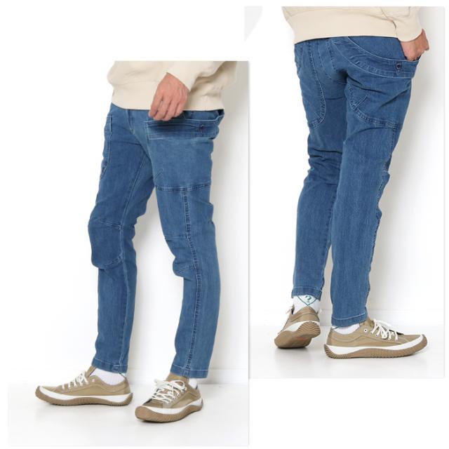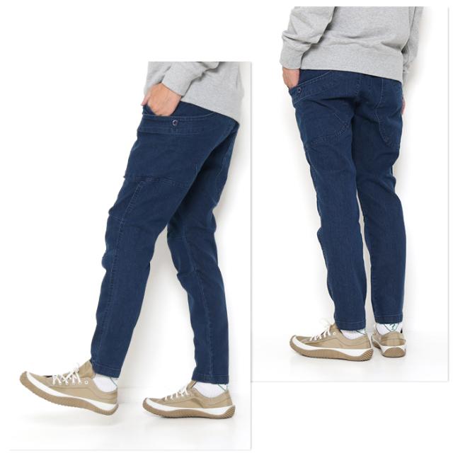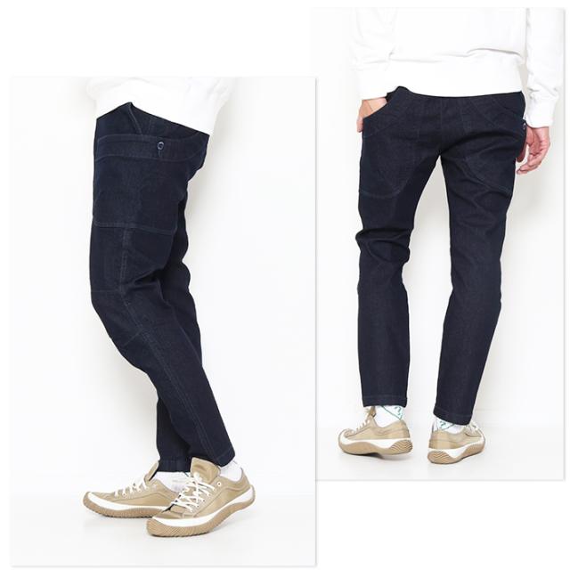 アクティブなシーンでも動きやすく快適なチノとデニムのクライミングパンツです。 スリムテーパードシルエットですが、ひざ部分にタック入りで動きやすい。 フロントからバックにかけて大きなポケット付きで収納力が高い。 |