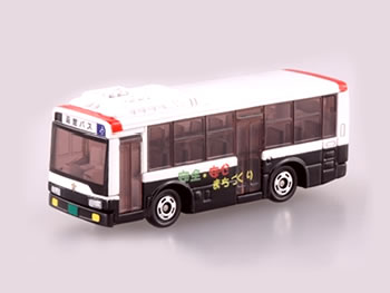 函館で走っていた交通安全ラッピングバス「パトカーバス」をトミカで表現。