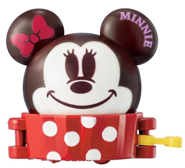 ミニーは、チョコレートカラーにラズベリー色のリボンがポイントです。カップはスカートの水玉模様をデザイン。