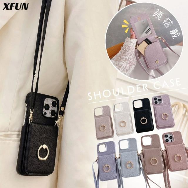 新登場/ iPhone 17 ケース 本革調 iPhone16 ケース iPhone15 ケース iPhone14 ケース 軽量 レザー くすみ クリーム スマホショルダー ショルダーケース レディース ミラー付き 鏡 スタンド 縦横 カード収納 リング付き マグネット ボタン カメラ保護 ショルダーストラップ