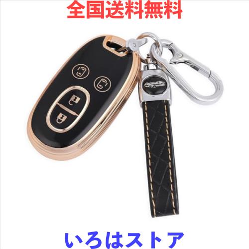 [YANMW] アルトキーケース適合スズキワゴンR スティングレーキーカバー ルークススマートキーケース ソリオ (ゴールデンブラック)