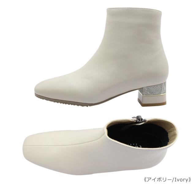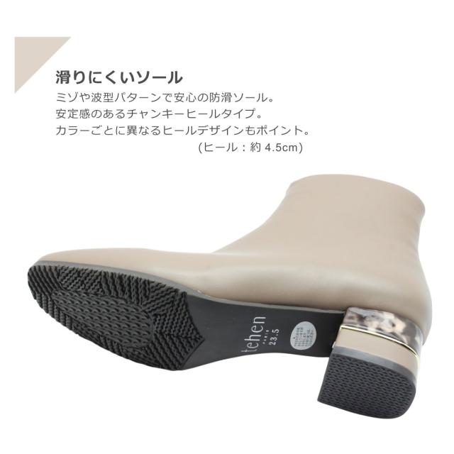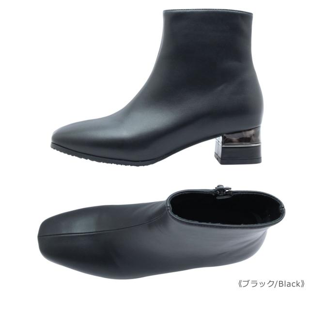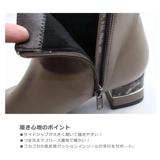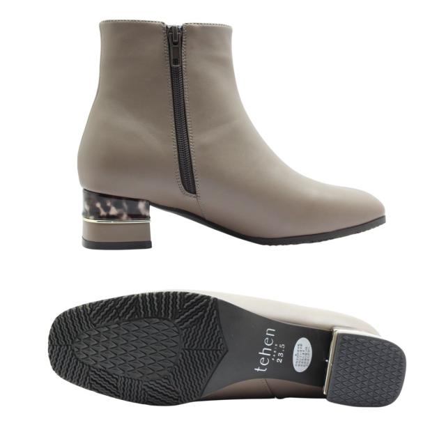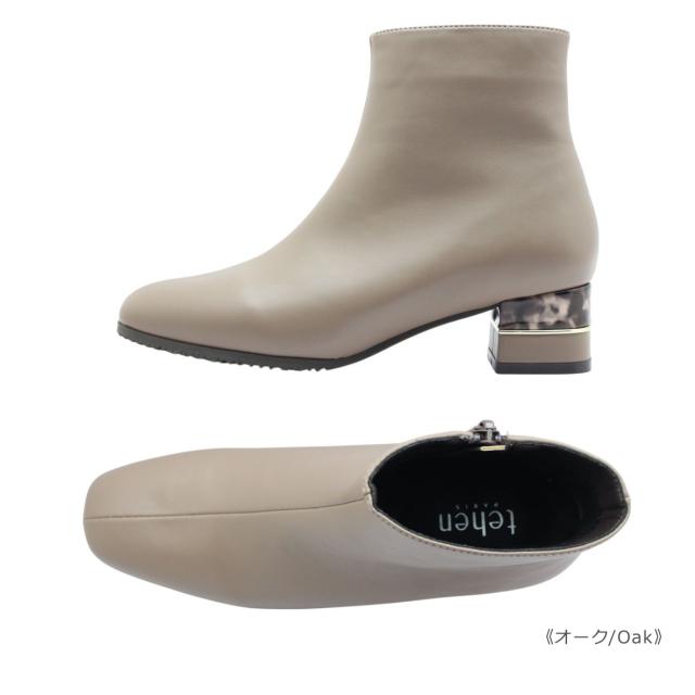 tehen テーン テン レデイース ブーツ 1764 ショート スクエアトゥ ローヒール チャンキーヒール ブーティ ジップ 撥水 防滑 防寒 歩きやすい 靴 黒 白 ブラック オーク アイボリー