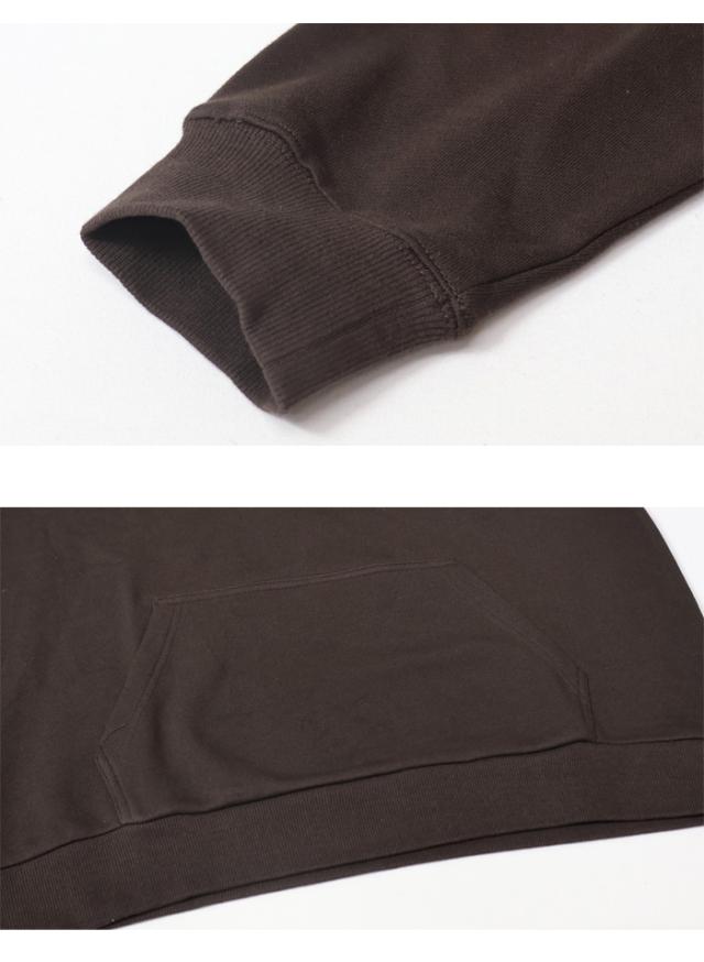 型崩れしにくく、耐久性が高く、使うほどに肌馴染みがよい裏毛を使用した、左胸にRUNNING MANのワンポイント刺繍が入ったスウェットパーカです。今シーズンは、定番のGREY HEATHERに加え、ヴィンテージライクな色合いのDARK BROWN/PIG OATMEALが仲間入りです。