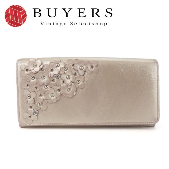 中古 アンテプリマ 長財布 マッツェット レザー ラインストーン ピングゴールド シルバー金具 花 二つ折り 小物 レディース 女性 ANTEPRIMA