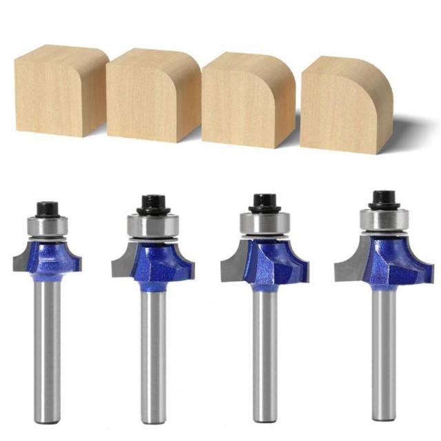Hicello トリマービット 丸面ルータービット 6mm軸 4本セット タングステン鋼 超硬刃 面取りカッター コーナーラウンド フライスカッター ボーズ面ビット 溝ほり・面取り・飾り面加工 DIY木工用 電動トリマー用ビット 切削工具 工業用品質 トリマー替刃