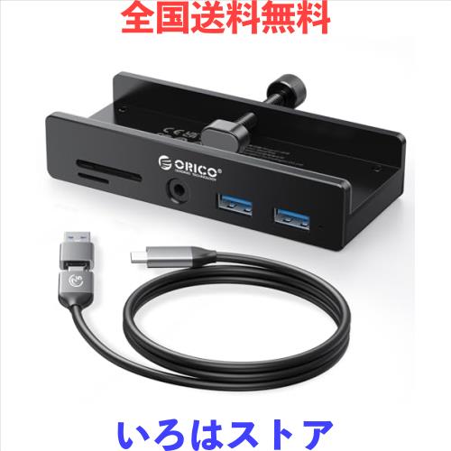 ORICO USB-Cハブ クランプ式 5ポート(TF/SDカードリーダー、USB-A×2、3.5mmオーディオ) 5Gbps高速転送 USB-C 給電ポート付き(5V) バ