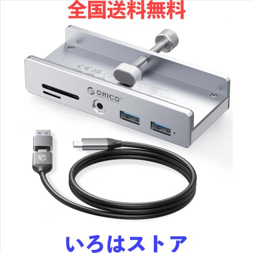 ◆商品名:ORICO USB-Cハブ クランプ式 5ポート(TF/SDカードリーダー、USB-A×2、3.5mmオーディオ) 5Gbps高速転送 USB-C 給電ポート付き(5V) バ