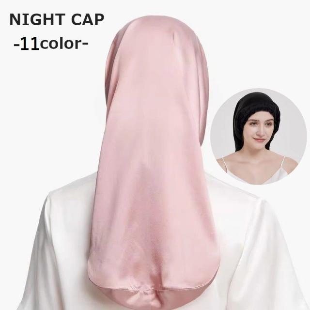 ナイトキャップ ヘアキャップ レディース 女性 筒型 ロングヘア用 就寝用 髪保護 ヘアケア サテン調 シンプル かわいい