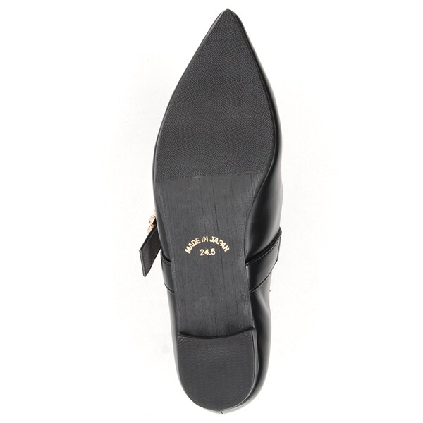 サイドのビジューバックルがキラリと光り、足元を一気に華やかにしてくれる1足。