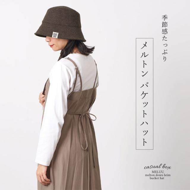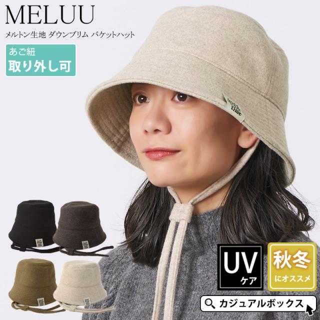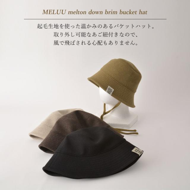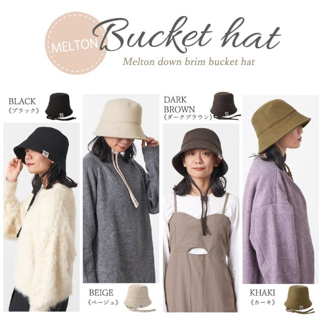 レディース 秋 冬 秋冬 秋用 冬用 帽子 つば広帽子 つば広ハット つば付き帽子 メトロハット バケツハット バケハ 日よけ帽子 日除け帽子 おしゃれ かわいい あったかい あご紐付き | MELUU メルトン生地 ダウンブリム バケットハット ht-mel