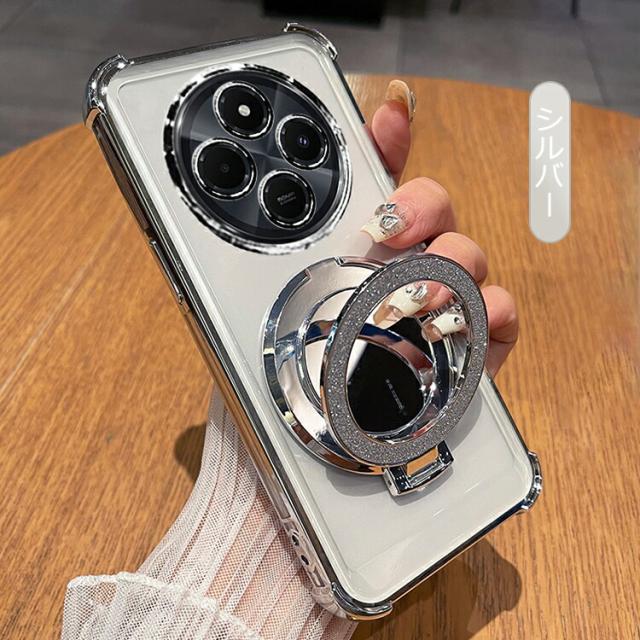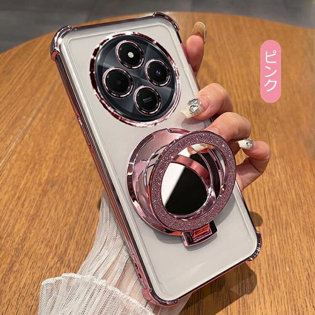 Redmi 14C クリアケース カバー クリア 透明 メッキ TPU ソフトケース分離型スマホリング付き ミラー付き スタンド機能 角 保護 コーナーバンパー ストラップ穴 小米 シャオミ レッドミー 14C アンドロイド おすすめ おしゃれ シャオミー レドミー
