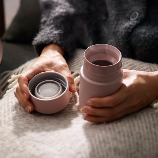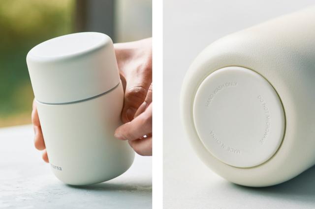 先端にいくにつれ薄くなる飲み口と艶やかな表面により、口当たりの良さを実現しました。パウダーコーティングを施したボディはまるで陶器のような質感です。