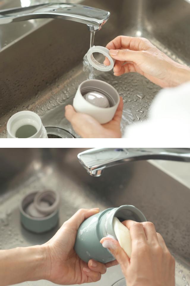 傷が付きにくく水切れがいいセラミック加工が施されています。3パーツのみのシンプルな構造で、汚れが溜まりにくく毎日のお手入れが楽にできます。