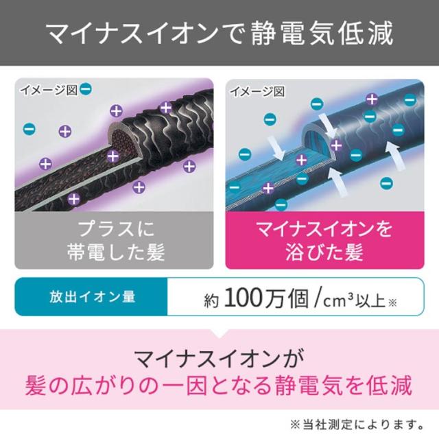 ●ブラッシングしながらマイナスイオンが髪全体に行き届き、静電気を低減します。