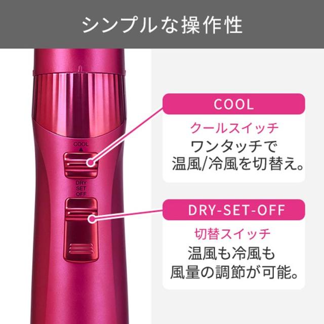 ●クールスイッチ:温風⇔冷風をワンタッチで簡単に切替えでき、冷風を瞬時に当てることでセットを長持ちさせます。