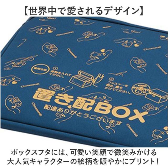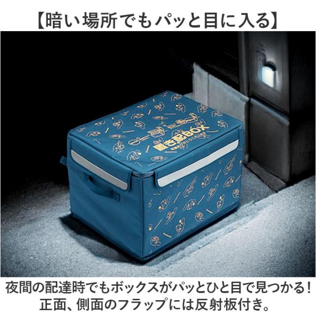 | 商品説明 | 【荷物の受け取りを便利にサポート】 ・お馴染みのキャラクターたちが大切な荷物を見張り番♪「置き配ボックス(Mサイズ)」が新登場! 【お留守中に荷物が届いても大丈夫】 ・お出掛け中に届いた宅配便の荷物を安心してしまえる!可愛いらしくて丈夫な保管用ボックス。 【大きめ荷物もすっぽり入る!】 ・ダンボール箱100サイズ(長さ・幅・深さ、3辺の外寸合計100cm以内)に対応した約55Lの大容量設計。 【ボックスがしっかり自立】 4つの側面に芯材パネルを内蔵しているので、ボックスが型崩れせず内側の荷物をしっかりガード。 【ダブルクローズ方式でピタッと密閉】 ・ファスナー×面ファスナーのダブルクローズ方式で開口部を密閉。雨の吹込みなどから荷物を守る♪ ・※ボックス生地表面にははっ水加工が施されておりますが、完全防水仕様ではありません。台風など雨風が強い時には使用しないでください。 【錠がセットできるダブルファスナー】 ・ダブルファスナーの引き手同士を南京錠で施錠することができるので、セキュリティ面でも安心。 ・※宅配業者の方が分かるように、ファスナーの片側に錠前を開いた状態で掛けておくと便利。 ・※ファスナー用の錠前は付属しておりません。ファスナーに取り付けできる直径4mm以内のものをご購入ください。 【暗い場所でもパッと目に入る】 ・夜間の配達時でもボックスがパッとひと目で見つかる!正面、側面のフラップには反射板付き。 【ロック式ワイヤーで盗難防止!】 ・付属のロック式ワイヤーを背面ループに通し、玄関のポールなどに固定すれば、盗難防止に効果的。 ・※固定用ワイヤー用のダイヤルキーの使用方法は付属の説明書をご確認ください。 【アルミシートで保冷効果がUP】 ・ボックス内側は、食品などの荷物の一時保管にも安心な、保冷効果のあるアルミ蒸着シート仕上げ。 【マルチに使えるクリアポット】 ・宅配業者さんから受け取る納品書や、置き配ボックスの使い方メモを入れておける透明ポケット付き。 |