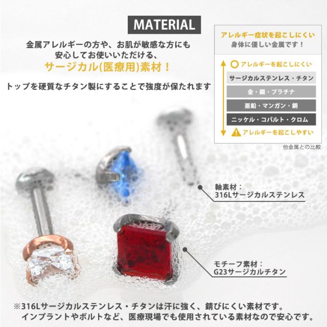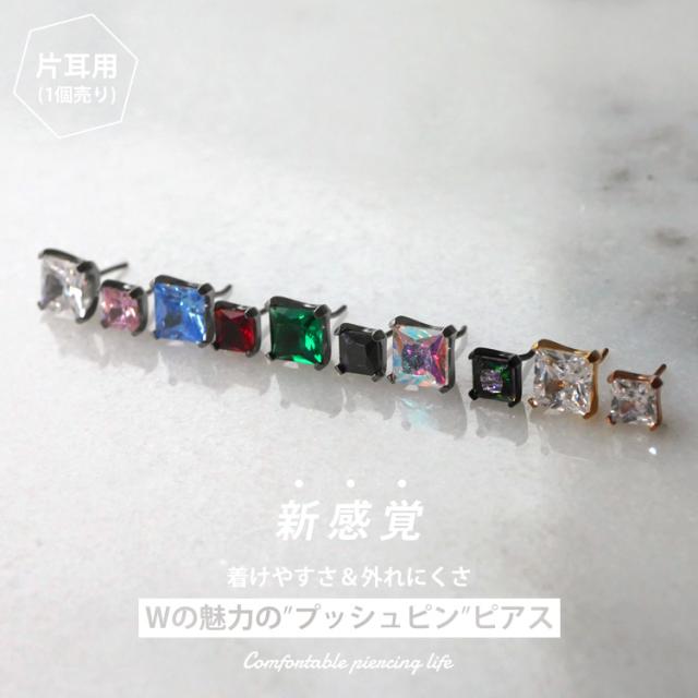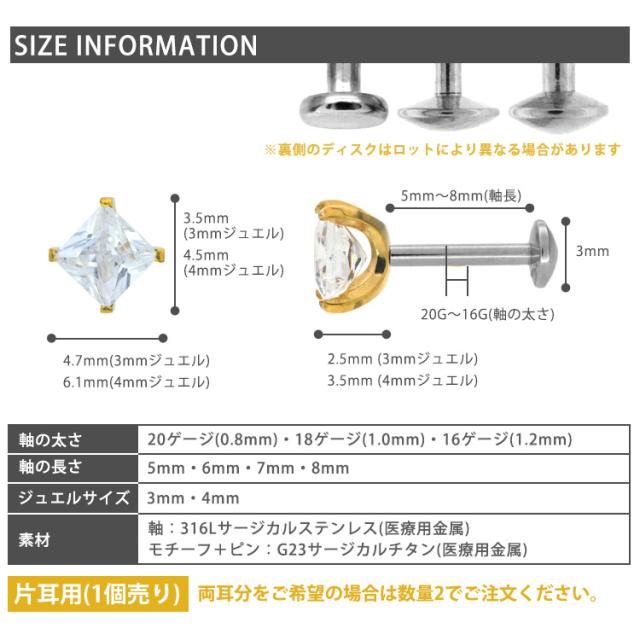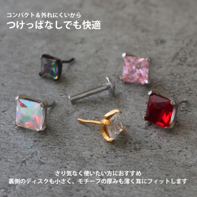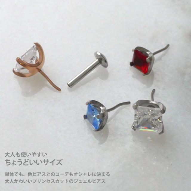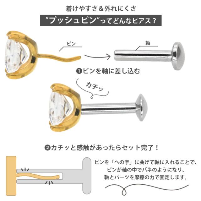【ネジ不要/摩擦でロック】つけっぱなしピアス ボディピアス 20G 18G 16G ラウンドバックプリンセスカット立爪ジュエルプッシュピンラブレット トラガス 軟骨ピアス 【片耳用】