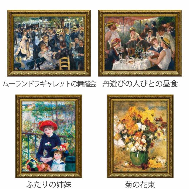 《 LH16872 額 額縁 壁飾り リビング 玄関 寝室 飾り 装飾 美術 プレゼント ギフト 癒し 模様替え 引っ越し 新築 開店 祝い 人気 おすすめ 大人 可愛い カワイイ お洒落 新生活 カフェ 店舗 サロン 客室 ホール ホテル ムーラン・ド・ラ・ギャレットの舞踏会 舟遊びをする人々の昼食 ふたりの姉妹 菊の花束 花 菊 》