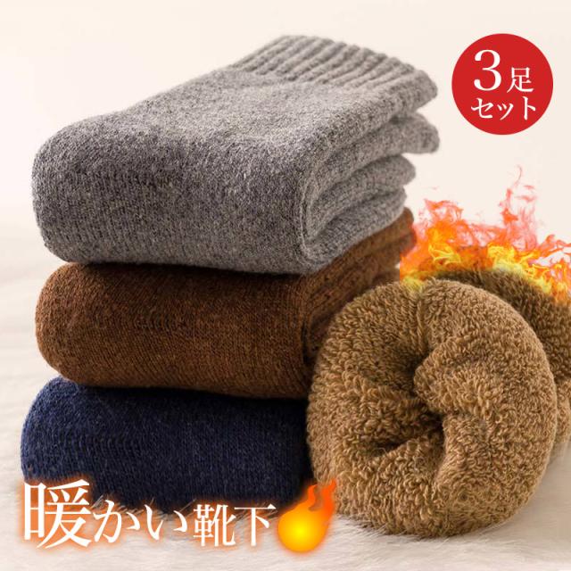 靴下 3足セット メンズ ウール ショットソックス 裏起毛 サンゴ 抗菌防臭 吸湿 発熱 ルームソックス カラフル 暖かい 保温