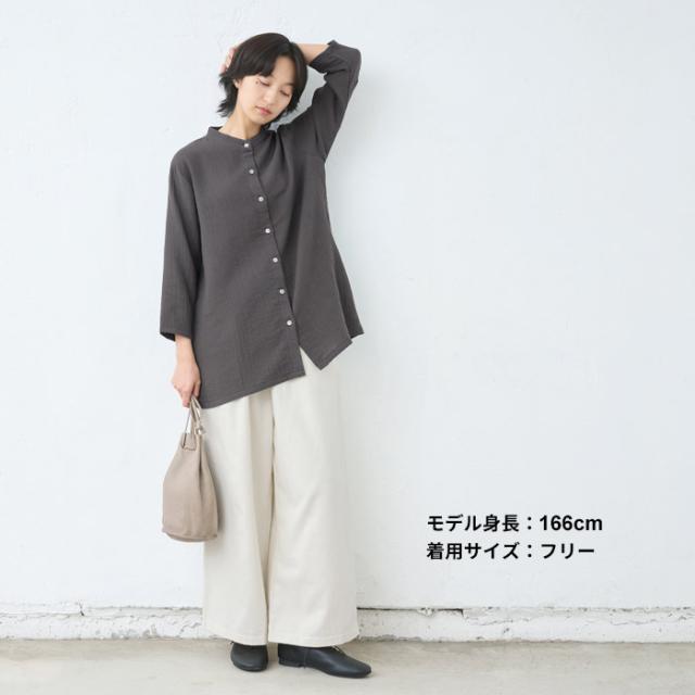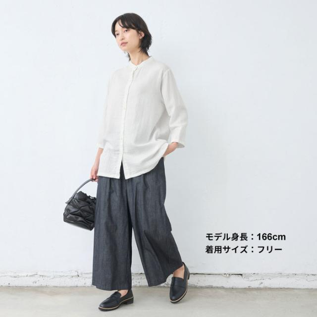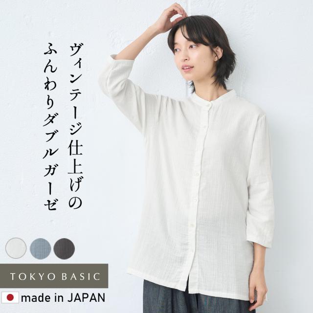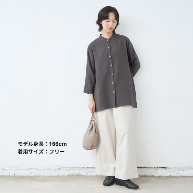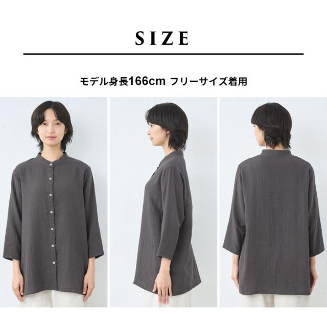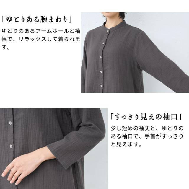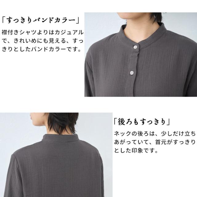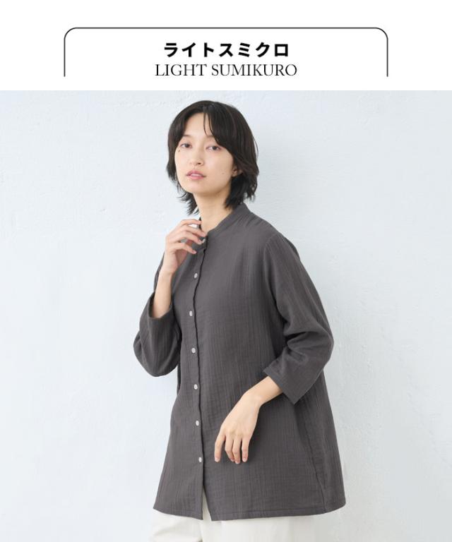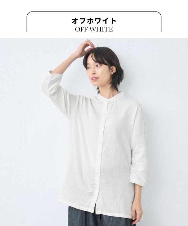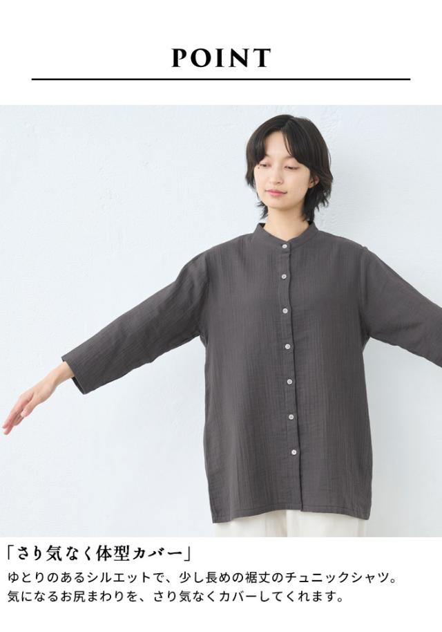 [ シャツ レディース 長袖 コットン リネン ] ダブルガーゼ バンドカラー チュニック / 日本製 40代 50代 60代 30代 女性 七分袖 7分袖 無地 白 ホワイト 綿 麻 トップス ゆったり きれいめ 体型カバー 春 秋 冬 秋冬 天然素材 オフィス