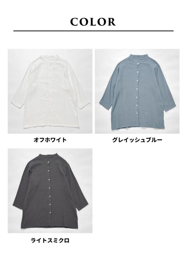 シャツ レディース 長袖 コットン リネン ダブルガーゼ バンドカラー チュニック 日本製 40代 50代 60代 30代 女性 七分袖 7分袖 無地 白 ホワイト 綿 麻 トップス ゆったり きれいめ 体型カバー 春 秋 冬 秋冬 天然素材 オフィス 長袖シャツ 7分袖シャツ 丈長め 丈 長め コットンリネン 綿麻 白シャツ ナチュラル カジュアル シンプル 大人 ブルー 青 スミクロ