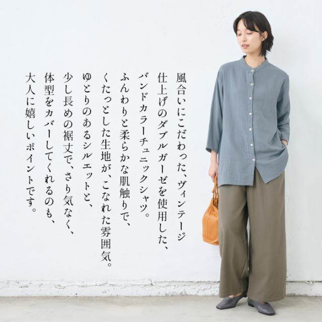 ダブルガーゼ バンドカラー チュニック