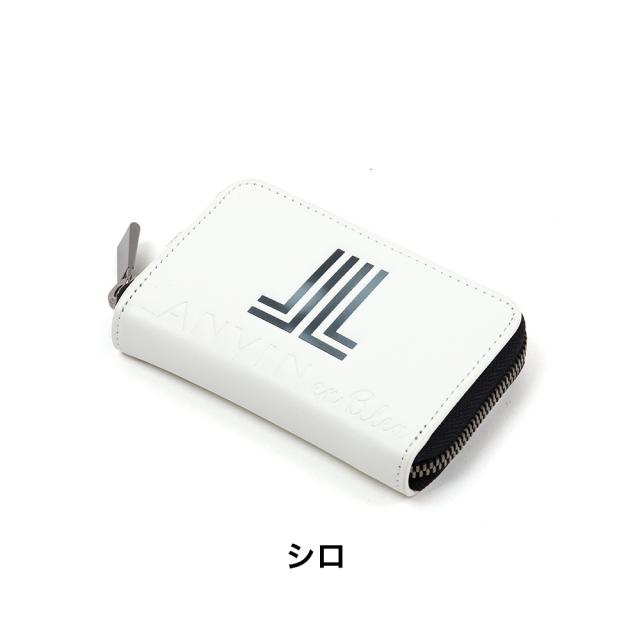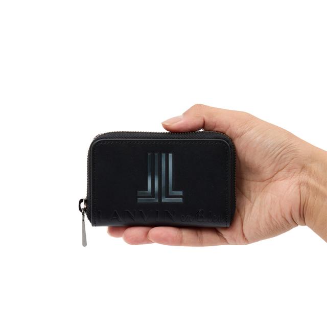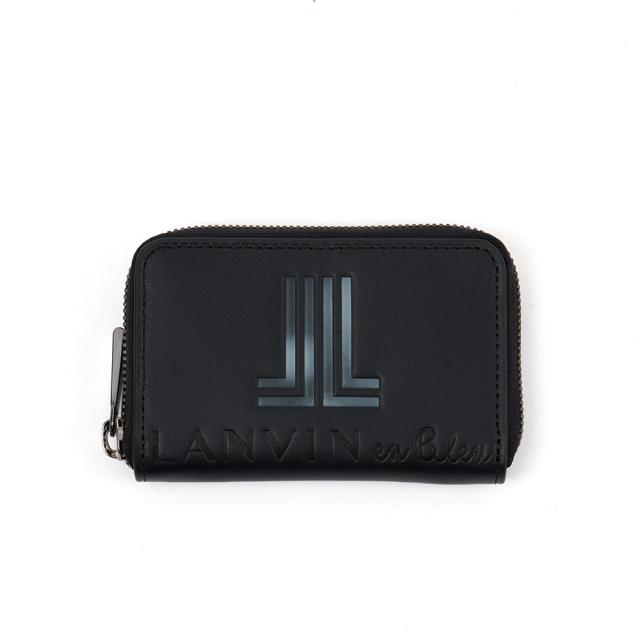 ランバンオンブルーの文字を型押しで大きく表現した、ラウンドファスナー型小銭入れ。ブランドのシンボルマークである「JL」ロゴをグラデーションで用いた、シンプルでもエッジーな革小物です。