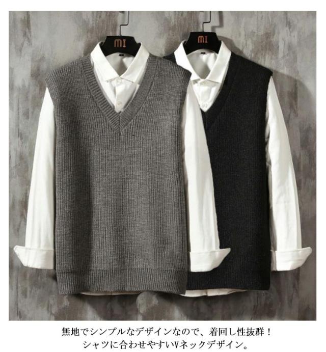 | M〜2XL!男性用の無地V首(Vネック)ニットベスト 無地でシンプルなデザインなので、着回し性抜群!シャツに合わせやすいVネックデザイン。 ごわつかない程度の厚さなので、ジャケットやスーツの下に着ても着ぶくれせずすっきりと着こなせます。 伸縮性に優れ、よく伸びるので、動きにくさを感じさせません。 どんなスタイルにも合わせやすく、通学はもちろん、普段着としてもお使いいただけます。 通勤・通学が辛い冬の季節でも、防寒着としてしっかり体を温めてくれます。寒さ対策にもぴったりの一枚です! | |