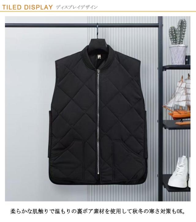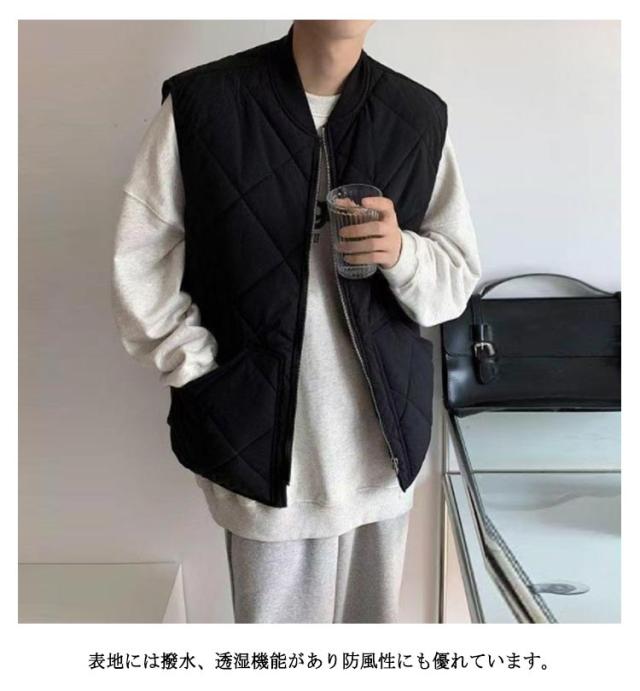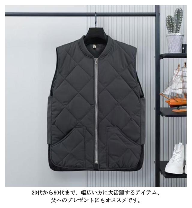 メンズ ベスト 秋冬服 中綿ベスト 暖かい ノースリーブ ジレ 普段着 中綿ジャケット 羽織り スタンドカラー ゴルフ 無地 紳士 おしゃれ ZIP 大きいサイズ チョッキ ライト アウター カジュアル 秋 冬 軽量 防寒 中綿ブルゾン ジップアップ
