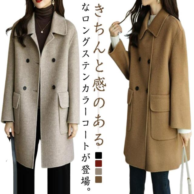 コート アウター レディース ステンカラーコート 折り襟 ロングコート 秋冬 クラシック 30代 40代 50代 通勤 オフィス キレイめ 送料無料