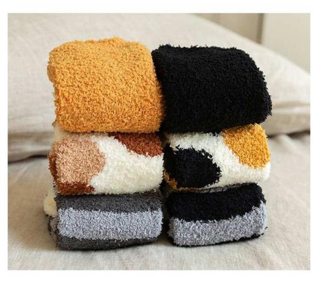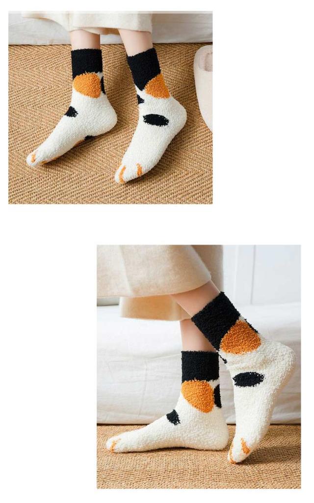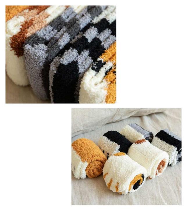 | 4足セット!寒い冬に重宝する、もこもこルームソックス まるで毛布に包まれているような履き心地◎とても可愛い猫爪モチーフもこもこ靴下。 履いた瞬間、ポカポカと温かく、足に馴染みやすく、うっとりするぐらいふわふわの履き心地。 厚手なのに伸びがよく、すっぽりと履けます。 足首から上は締め付け感がないので、おうちでのリラックスタイムや就寝時にピッタリです。 | |