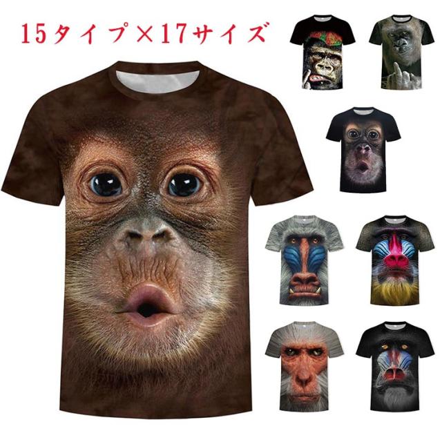 tシャツ 面白い メンズ レディース キッズ プリントtシャツ 半袖 イベント チンパンジー アニマルプリント ゴリラ おもしろ オラウータン 動物柄 子ども チンパンジー 速乾 吸汗 Tシャツ 大きいサイズ 猿 さる サル お猿さん 送料無料