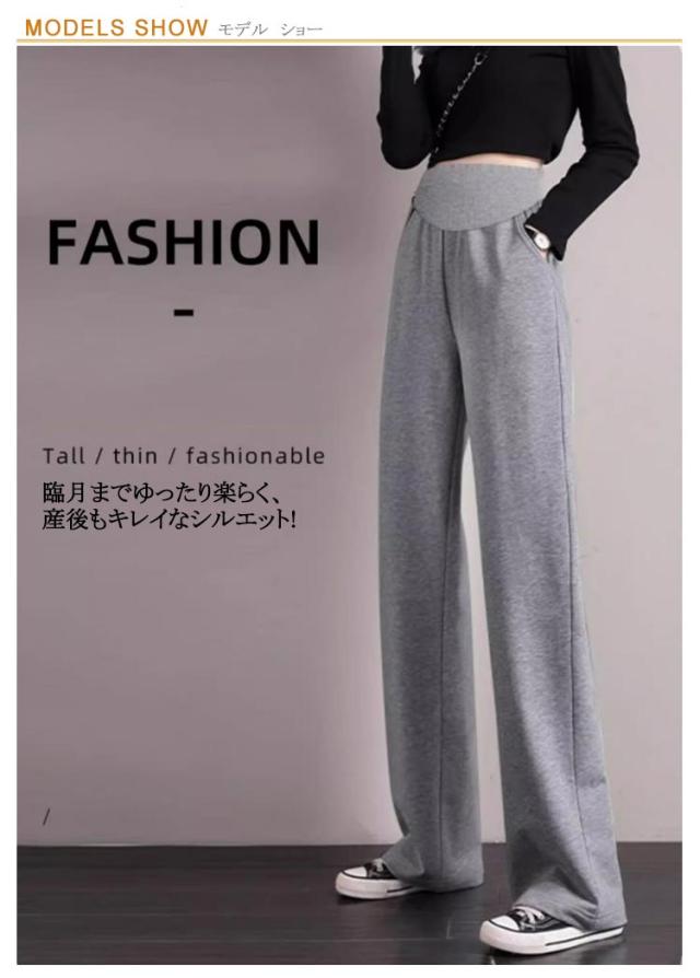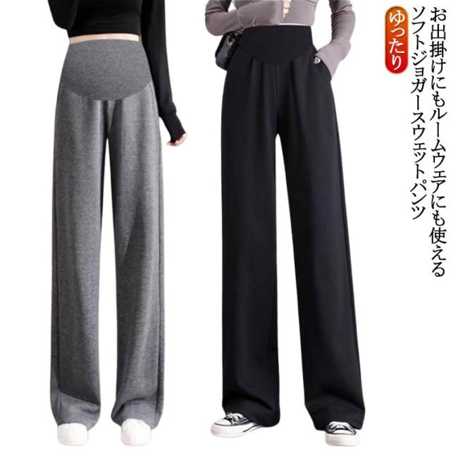 ルームウェア レギンス 春秋 ワイド 秋 パジャマ ワイド パンツ 産前産後 マタニティウェア 春 ゆったり 妊婦 マタニティ ボトム リラックス 臨月 マタニティパンツ 妊娠 マタニティ オフィス ストレート 体型カバー らくちん 黒 ブラック グレー 大きいサイズ
