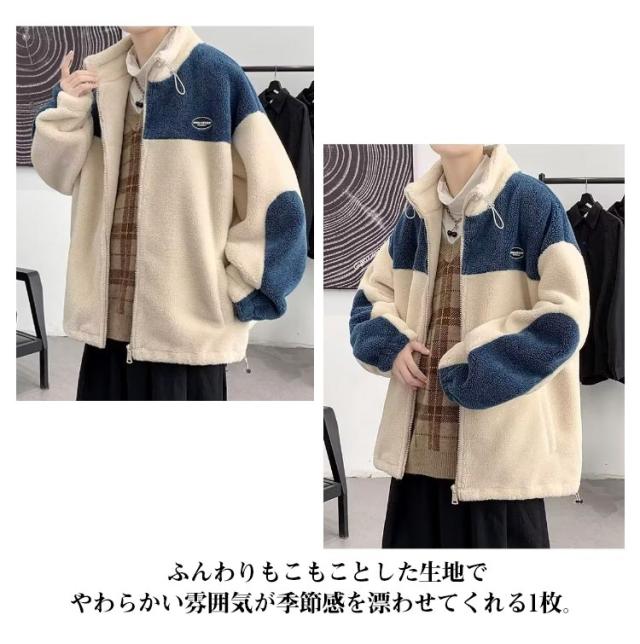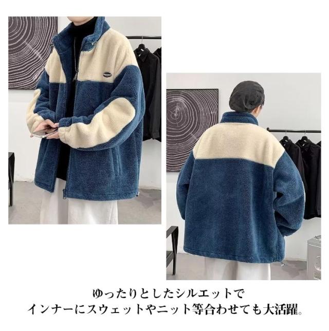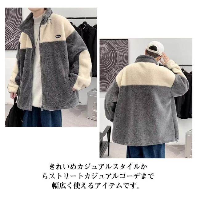 ボアジャケット アウター メンズ もこもこ 厚手 ボアブルゾン 中綿 アウター ゆったり 防寒 秋冬服 男性用 ボアコート ゆったり ジップアップ あたっか カジュアル 大きいサイズ 暖かい
