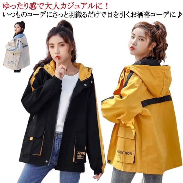 ウインドブレーカー 秋 ジャケット 長袖 マウンテンパーカー アウター 春秋 レディース 高校生 アウター 中学生 ブルゾン ジャケット マウンテンパーカー ミドル丈 フード付き 韓国 原宿系 BF ファッション ゆったり 大きいサイズ 春服 秋物