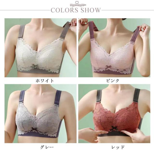 | 胸を小さく見せるブラ・全4色・しっかりとバストを支えます! バストを覆うレースがしっかりホールド。 バストトップの高さを目立たない様に工夫しました! バストの高さを抑え、コンパクトに見せる。 サイドの脇高効果でハミ肉をキャッチ! 頼もしい4列4段ホック。しっかりとバストを支えます! U字のバックスタイルで肩への負担も軽減し、後ろ姿もすっきり! フロントや脇だけでなく、背中までしっかりホールド。後姿もスッキリ美人に! 胸より小さく見えるようにカップの膨らみは極限まで抑えながら、美しいバストラインを実現。 バスト全体をすっぽり覆い、広い範囲でホールドするので、下垂の原因となるユレも抑えます。 | |