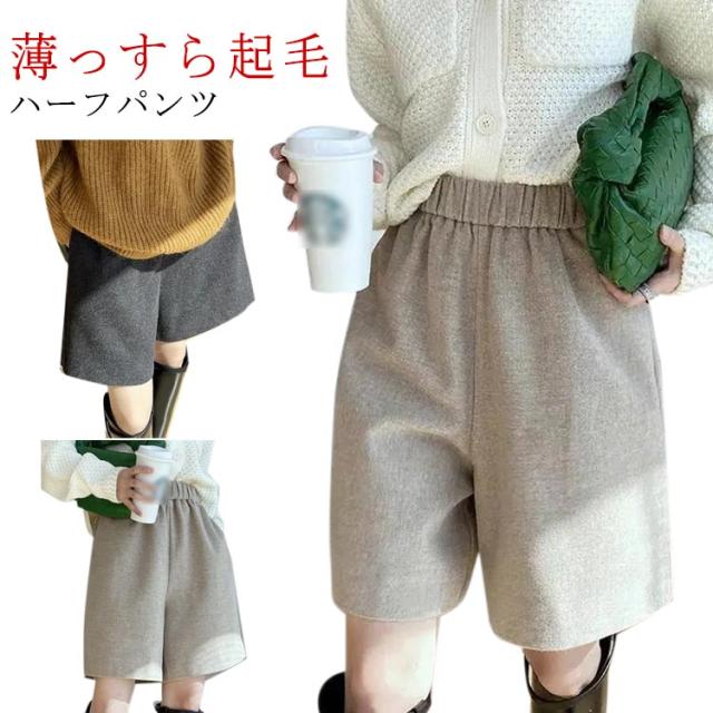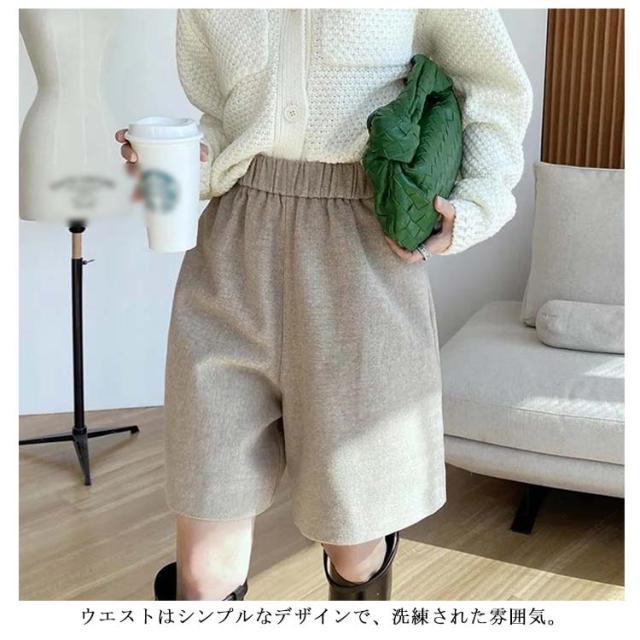秋冬 ハーフパンツ キュロット ウールタッチ キュロットパンツ レディース フェイクウール キュロットパンツ 秋冬 ワイドパンツ ショートパンツ 厚手 ひざ丈 短パン ウエストゴム