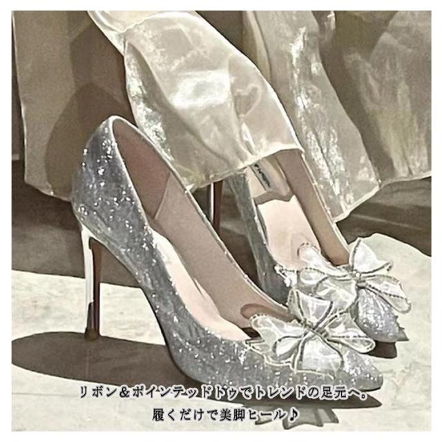 パンプス 結婚式 痛くない シルバー ウエディングシューズ レディース ハイヒール キラキラ パーティー 靴 ポインテッドトゥパンプス シューズ パンプス ピンビール