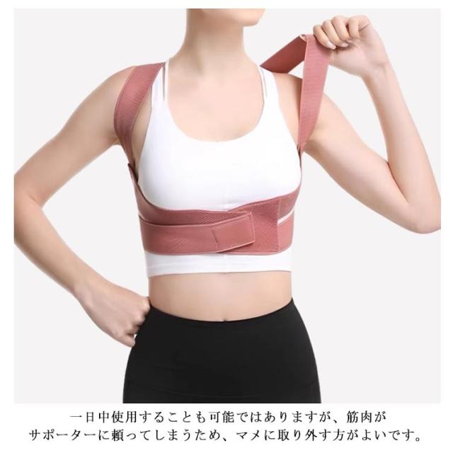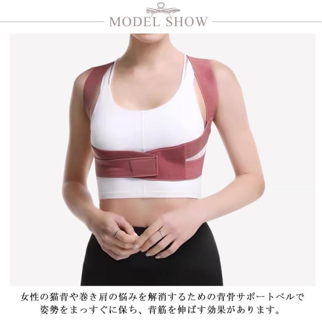 | 猫背矯正ベルトのおすすめ商品。 女性の猫背や巻き肩の悩みを解消するための背骨サポートベルで姿勢をまっすぐに保ち、背筋を伸ばす効果があります。 骨盤補正や肩甲骨のサポート、ゴルフや日常の姿勢補正に最適です。 一日中使用することも可能ではありますが、筋肉がサポーターに頼ってしまうため、マメに取り外す方がよいです。 シャキッとスマートな姿勢を保ちましょう。 | |